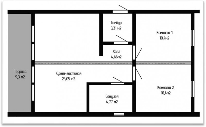 • Общая площадь 66 м2